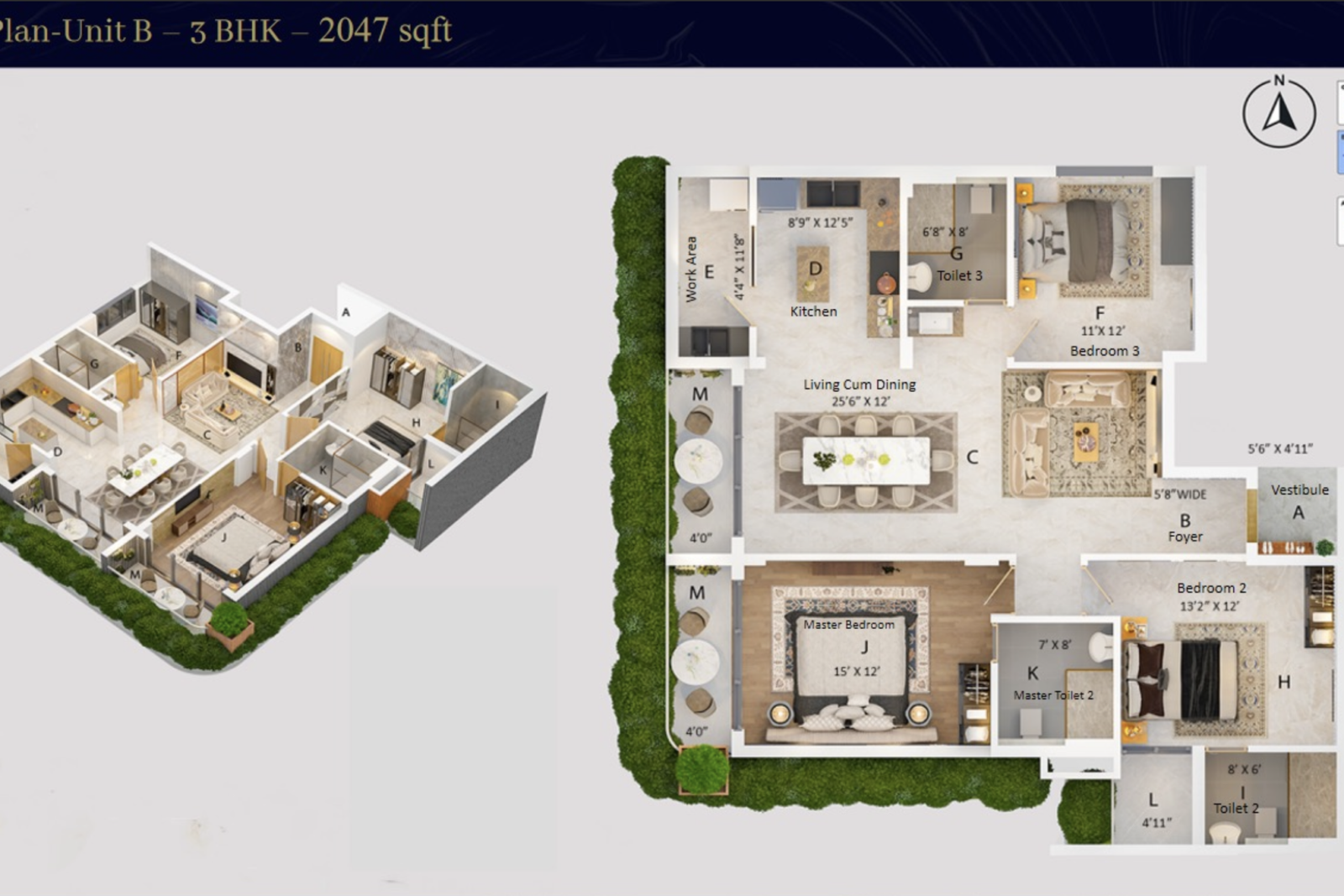Floor Plan-Unit B - 3 BHK - 2047 sqft
