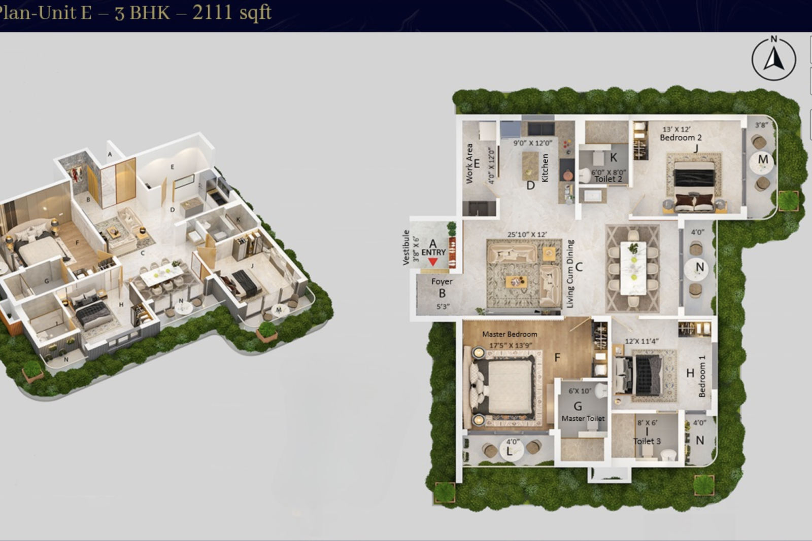 Floor Plan-Unit E - 3 BHK - 2111 sqft